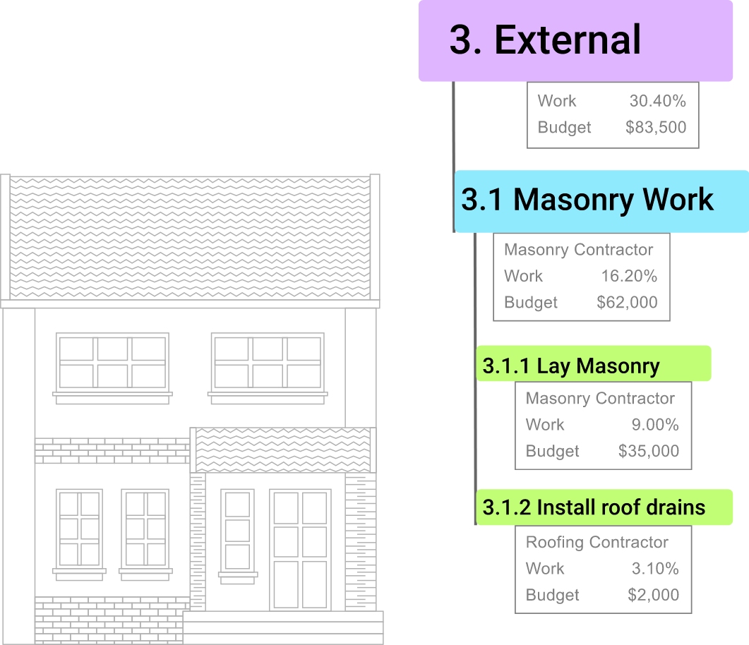 A Deliverable-Based Work Breakdown Structure clearly demonstrates the relationship between the project deliverables (i.e., products, services or results) and the scope (i.e., work to be executed). Figure 1 is an example of a Deliverable-Based WBS for building a house. Figure 2 is an example of a Phase-Based WBS for the same project.